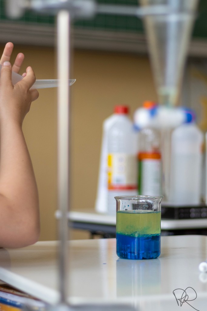 Ich löste vor den Augen der Schüler*Innen ein Stück Magnesiumband auf, was wiederum eine lebhafte Diskussion unter den Schüler*Innen auslöste, was sich alles sonst noch oder gerade nicht in Salzsäure auflöst. Als ich meinte, Gold löse sich nicht auf, und auf meinen Ring an meiner rechten Handzeigte, wusste ich, was auf mich zu kommen würde: Ein Moment, in dem ich meinem Wissen über Chemie zu 100% vertraute. Und das fühlte sich sehr gut an. Ich zog meinen Ring aus und lies ihn in das Becherglas mit der heißen Salzsäure fallen. Und es passierte – …!