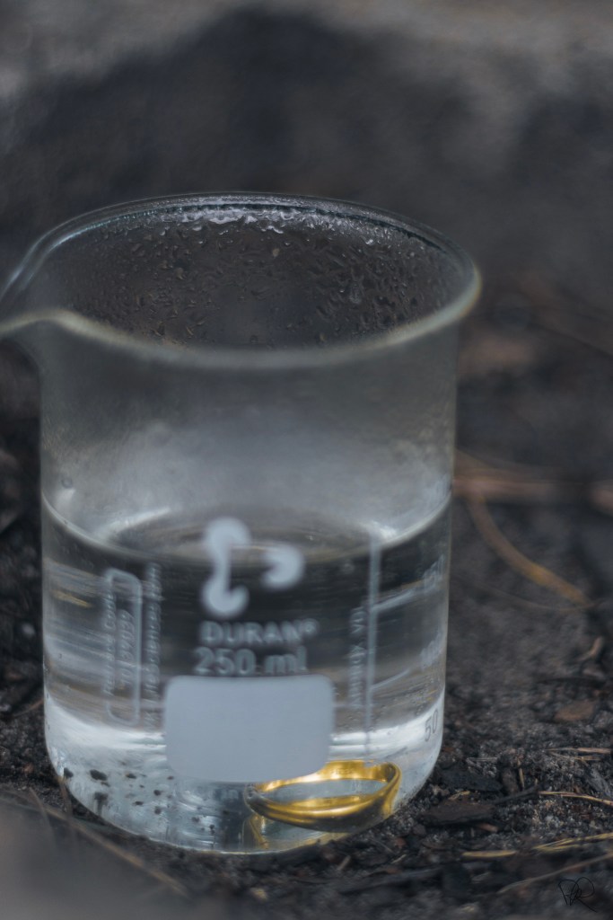 Vielleicht tragt ihr auch Schmuck aus diesen Edelmetallen, oder Mischungen aus diesen Edelmetallen, die auch Legierungen genannte wird. Der Ring, den ich in die heiße Salzsäure legte, besteht aus 75% Gold und ca. 25% Silber. Und er löste sich nicht auf. Es überraschte mich nicht wirklich, ich war mir ziemlich sicher. Die Schüler*Innen hielten trotzdem den Atem an, einige waren sogar etwas erschrocken, hatte ich ihnen doch zuvor gezeigt, wie sich ein Stück Magnesium und ein alter Nagel in der Säure auflöste.