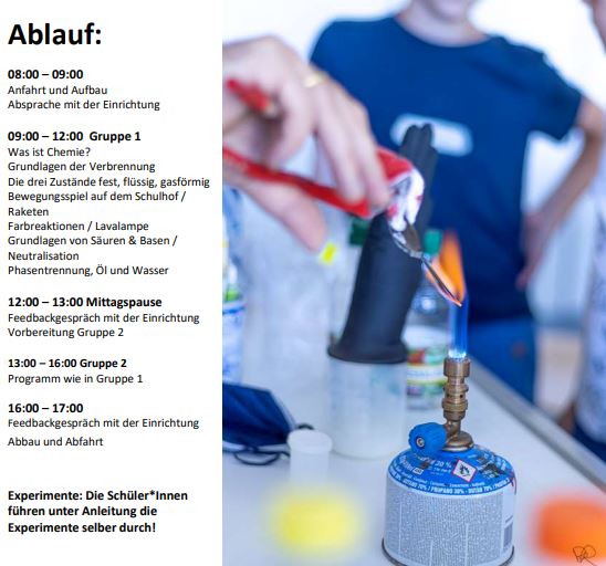 Sie planen für Ihre Schule einen Projekttag oder ein besonderes Betreuungsangebot in der OGS während der Ferien? Chemie-Edutainement von IchMachChemie bietet sich an…