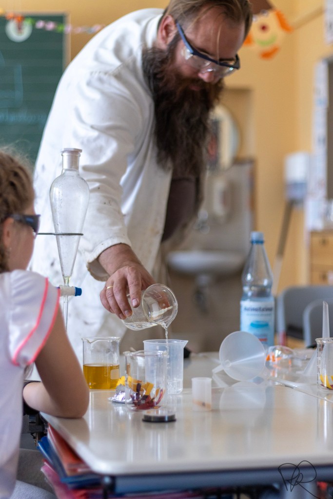 Viele meiner Aktivitäten führe ich im Auftrag von Schulen durch. In den letzten zwei Jahren waren dies besonders häufig Projekttage in dem Offen Ganztag von Grundschulen in der Umgebung oder bei der MINT-Aktivierung in den Schulferien. Die Abkürzung MINT steht für  Mathematik, Informatik, Naturwissenschaft und Technik. Da passt Chemie genau hinein.