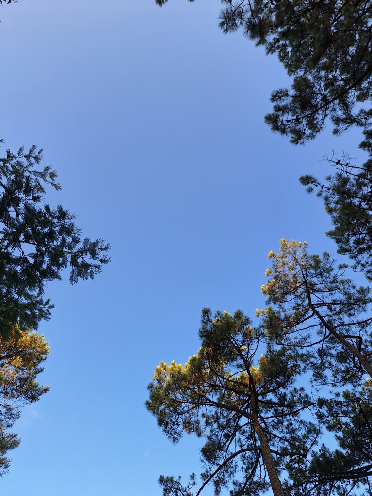 Das war viel. Und ich muss erstmal den Kopf wieder klar kriegen. Ich lege den Kopf nach hinten und schaue hoch. Sehe den blauen Himmel, höre die Zikaden rufen. Weiße Wolken ziehen, die Kronen der Kiefern bewegen sich langsam. Herrlich zu entspannen. Als ich so nach oben in die Wipfel der Kiefernbäume schaue und den aromatischen, harzigen Duft einatme, denke ich an Zellulose in den Kiefernnadeln und an komplexe Mischungen aus Terpenoiden, Harzsäuren, Polymere und ätherischen Öle. Ich denke an den Kunststoff Polyvinylchlorid PVC, aus dem der Wasserball meiner Tochter besteht und den Weichmacher Di-isononylphthalate, der da drin steckt und den Wasserball so elastisch macht. Langsam werde ich müde. Es wird warm, ich mache die Augen zu und schlafe langsam ein. Es war ein langer Tag.